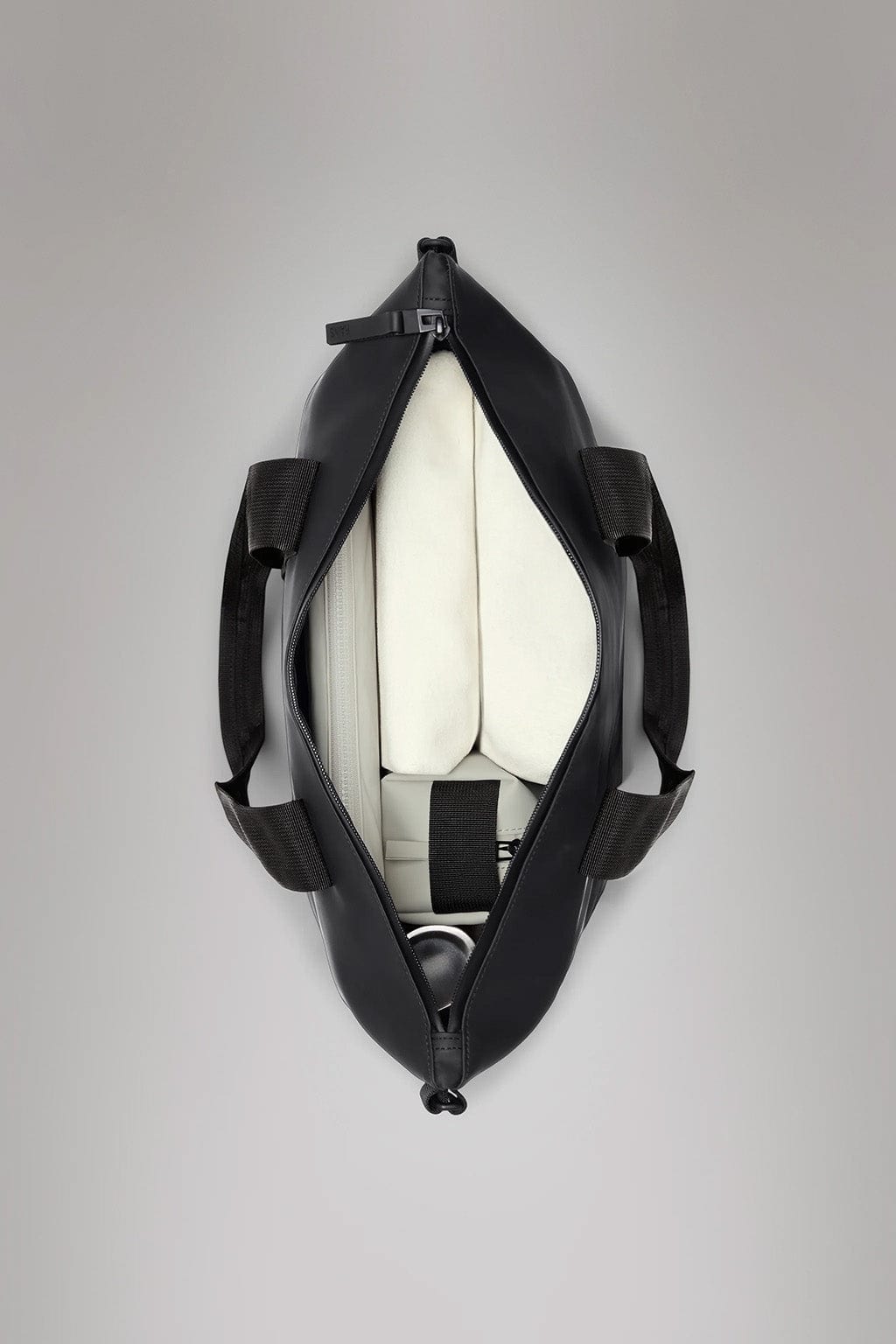 Tote Bag Mini is cut from Rains' signature PU fabric, engineered for carrying strength, durability and a smooth feel.