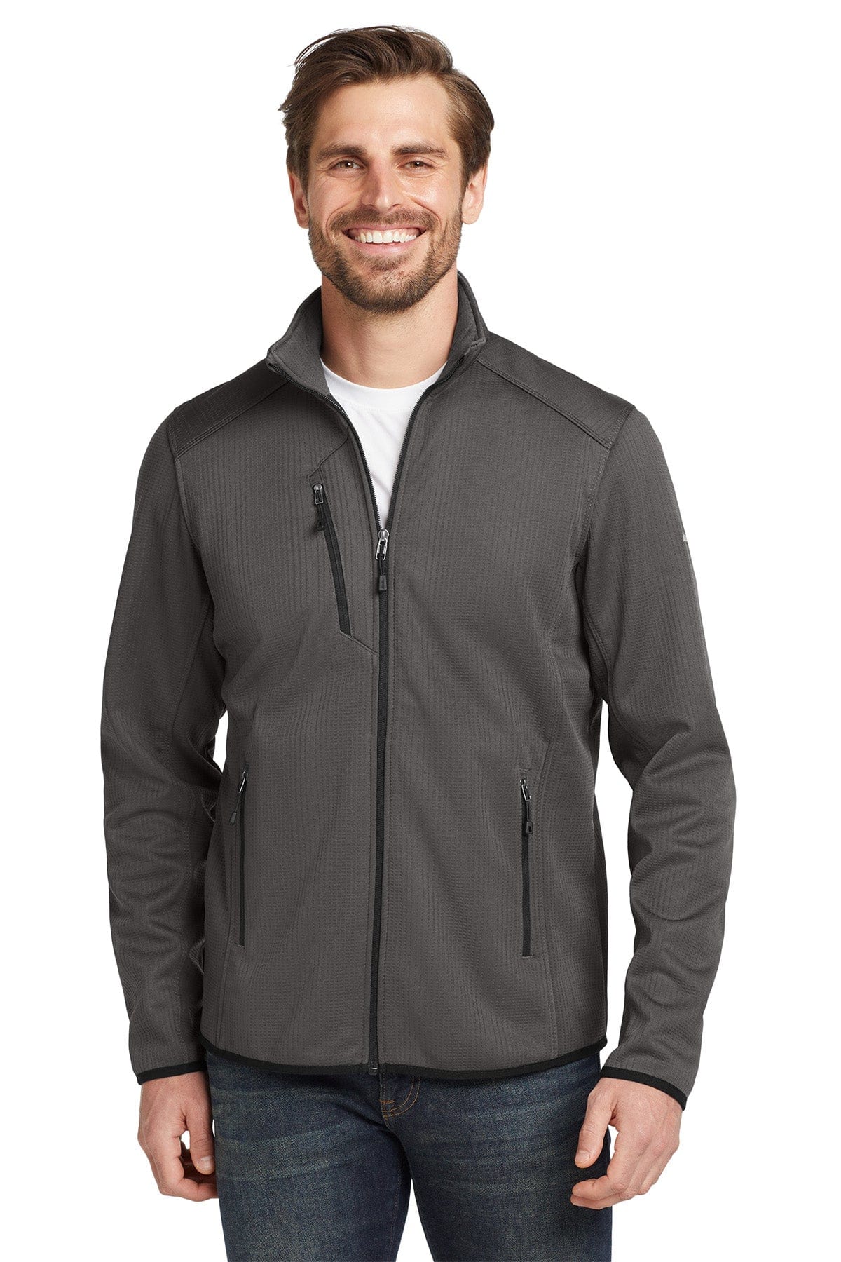 Combining textured and smooth-faced fleece for a dynamic look and unbeatable comfort, this full-zip also has stretch for superior mobility.