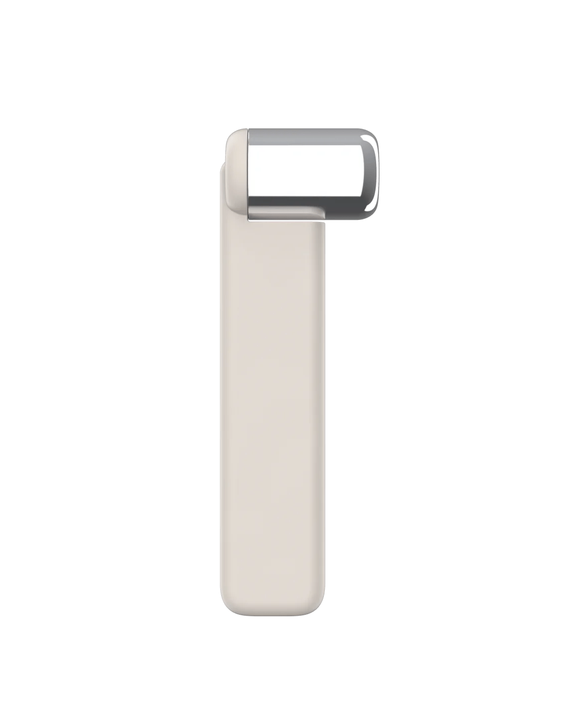 A contemporary ice roller to reduce puffiness, tightens skin, and calms redness. Soft matte plastic handle with a stainless steel roller and silicone protective cover.