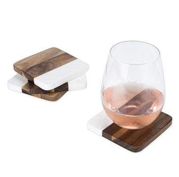 Mixed materials elevate these coasters to attractive accent pieces in their own right. The set of four is crafted from smooth marble and natural acacia wood.