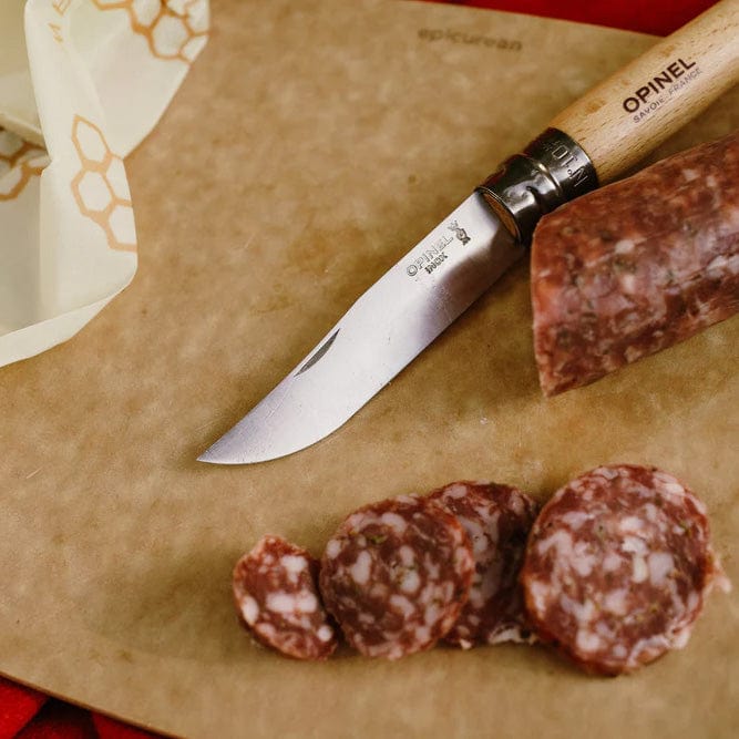 Opinel's most iconic size, the No.08, is the knife that started it all. Dating all the way back to 1890 when Joseph Opinel created a simple yet robust tool for the everyman, the No.08 has been featured in countless museums, books and galleries around the world. Whether you’re looking to sharpen your pencils, or prune your roses, the No. 08 has been a favorite of explorers, artists, farmers, and chefs alike. The perfect size to keep in your pocket or your bag, you'll be glad to have this folding knife close at hand. This size features the Virobloc® safety ring.