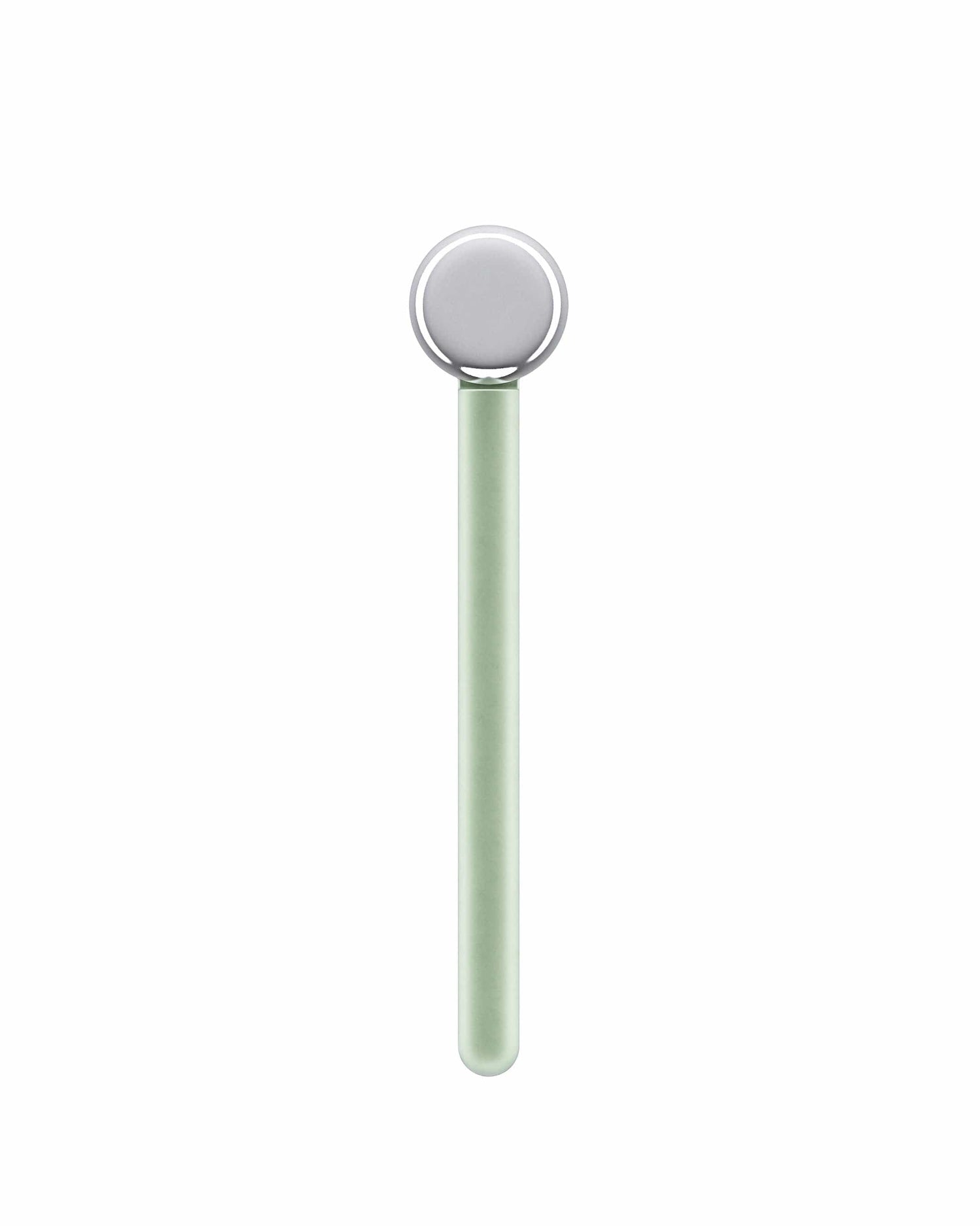 A contemporary ice roller to reduce puffiness, tightens skin, and calms redness. Soft matte plastic handle with a stainless steel roller and silicone protective cover.
