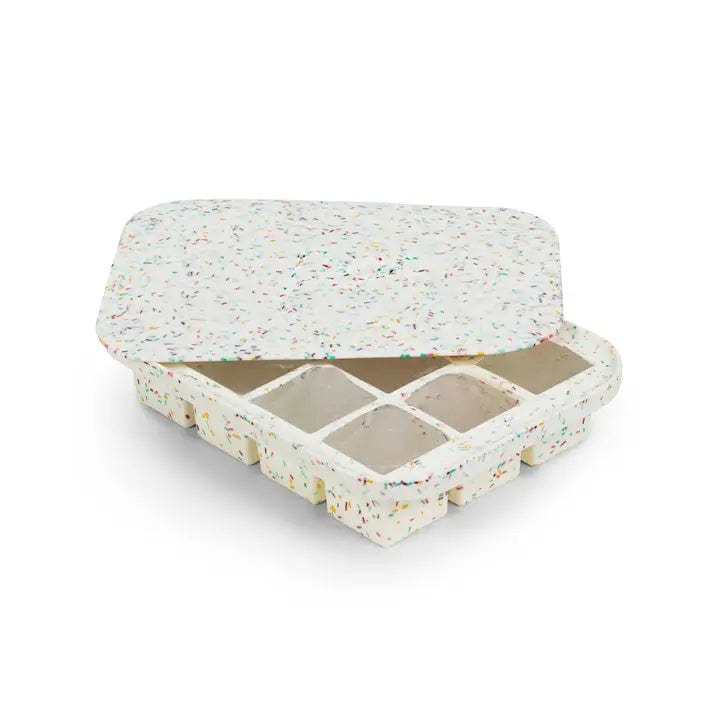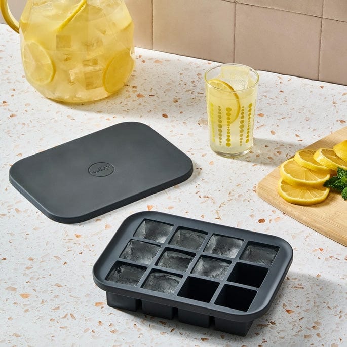 W&P's fan-favorite Everyday Ice Tray makes 12 generously sized, perfect ice cubes for your everyday beverage needs. Includes a lid for easy stacking and to keep out pesky odors. Thoughtful Details: A silicone-wrapped steel interior rim frames the tray to provide strength and rigidity for easily filling and mess-free transport to the freezer Nicer Ice: Individual cube molds easily pop out a single frozen cube at a time without having to twist and crack the tray