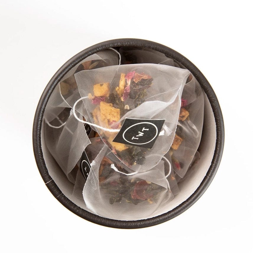 The perfect small gift for any occasion. Each mini tea tube is 2” wide and 3.5” tall and is made from 100% recyclable rigid paper tube material. Inside are 5 pyramid tea bags that are made from premium, plastic-free, biodegradable material.