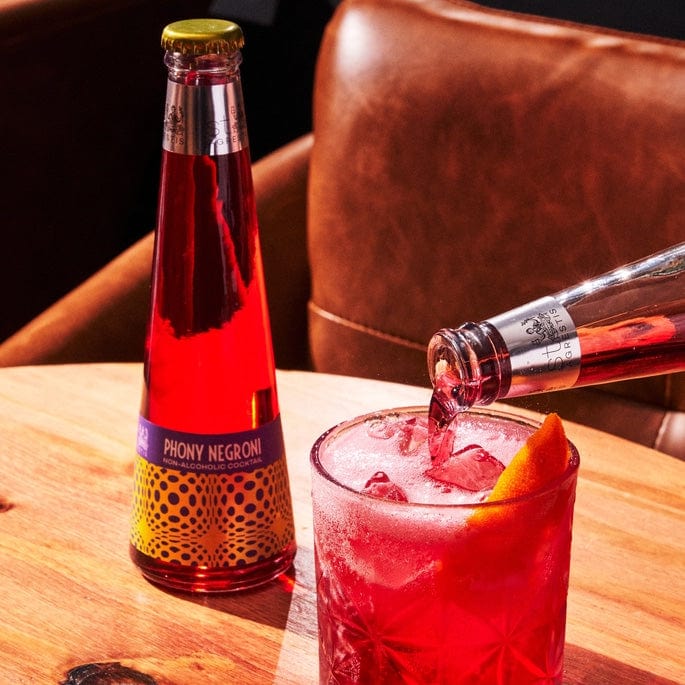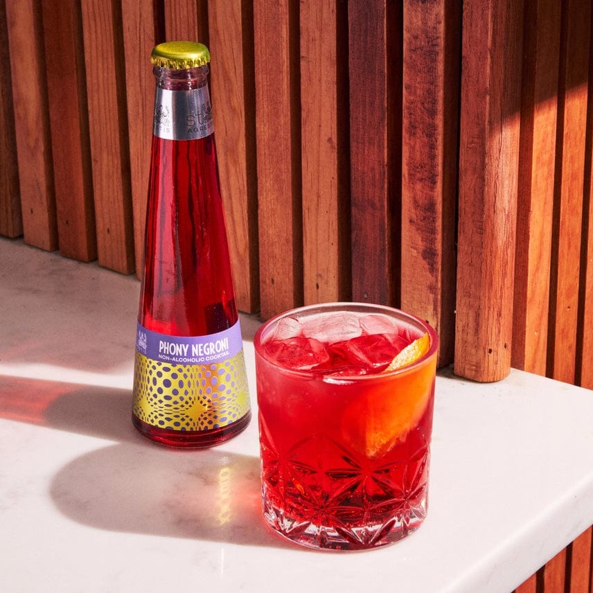 Produced and bottled by St. Agrestis at their Brooklyn, NY distillery, the Phony Negroni is made with 30 non-GMO, organic ingredients. With nuanced juniper, citrus, and floral notes, the Phony Negroni drinks with the same bitterness drinkers of the classic cocktail expect, alcohol-free.