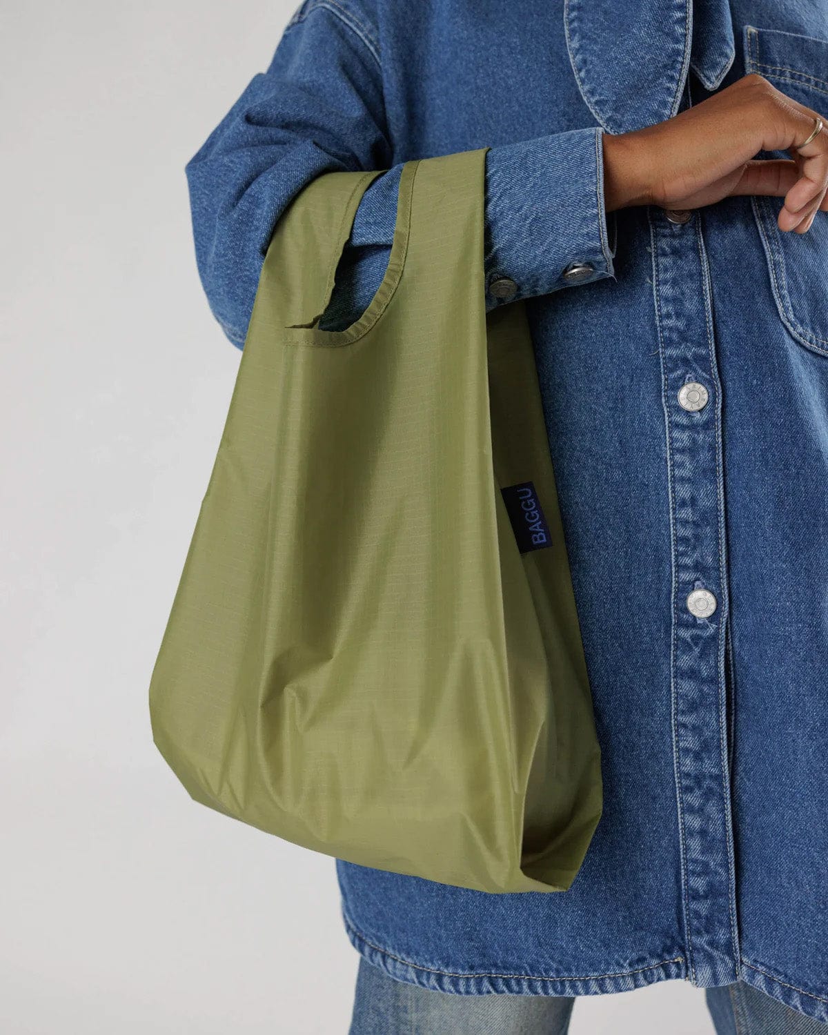 A smaller version of Baggu's original reusable shopping bag. Perfect for your lunch, a six pack, extra shoes, or a trip to the corner store. This item has updated packaging with a new pouch loop! Paper sleeves are no longer perforated for hanging.