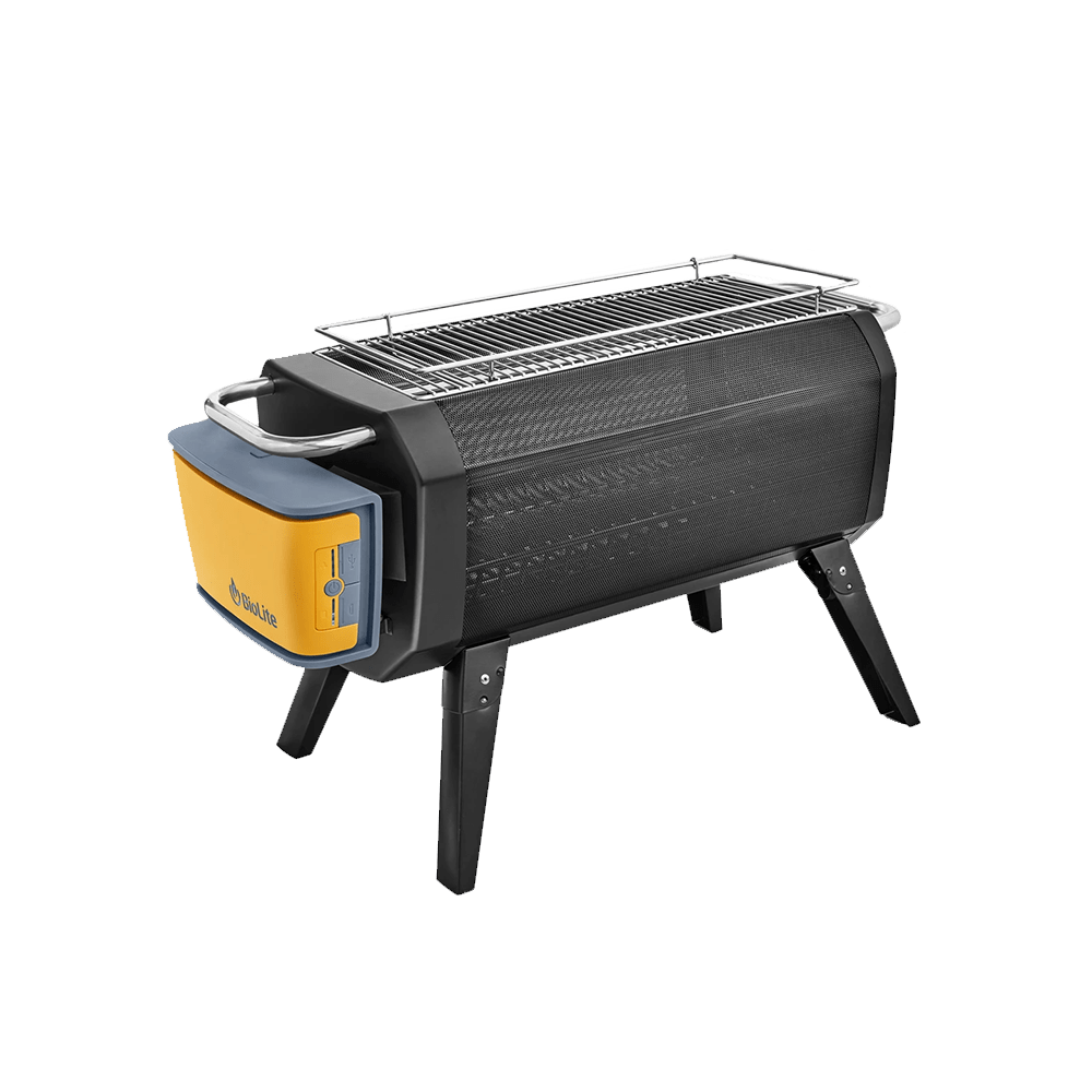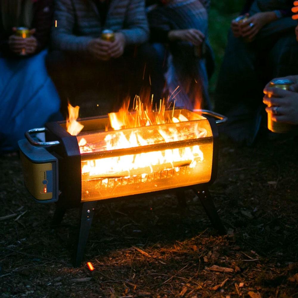 Enjoy the warmth, smell, crackle, and feel of a wood campfire, without any of the smoke. With capacity for up to 4 standard firewood logs, the BioLite FirePit creates hyper-efficient flames with patented airflow technology and gives you a front-row seat to the magic thanks to the X-Ray mesh body, enabling 360 views. Lift the fuel rack and toss in charcoal to transform it from a fire pit to a portable hibachi style grill, complete with an included grill grate. Control the size of your flames manually or remotely with the free Bluetooth app.