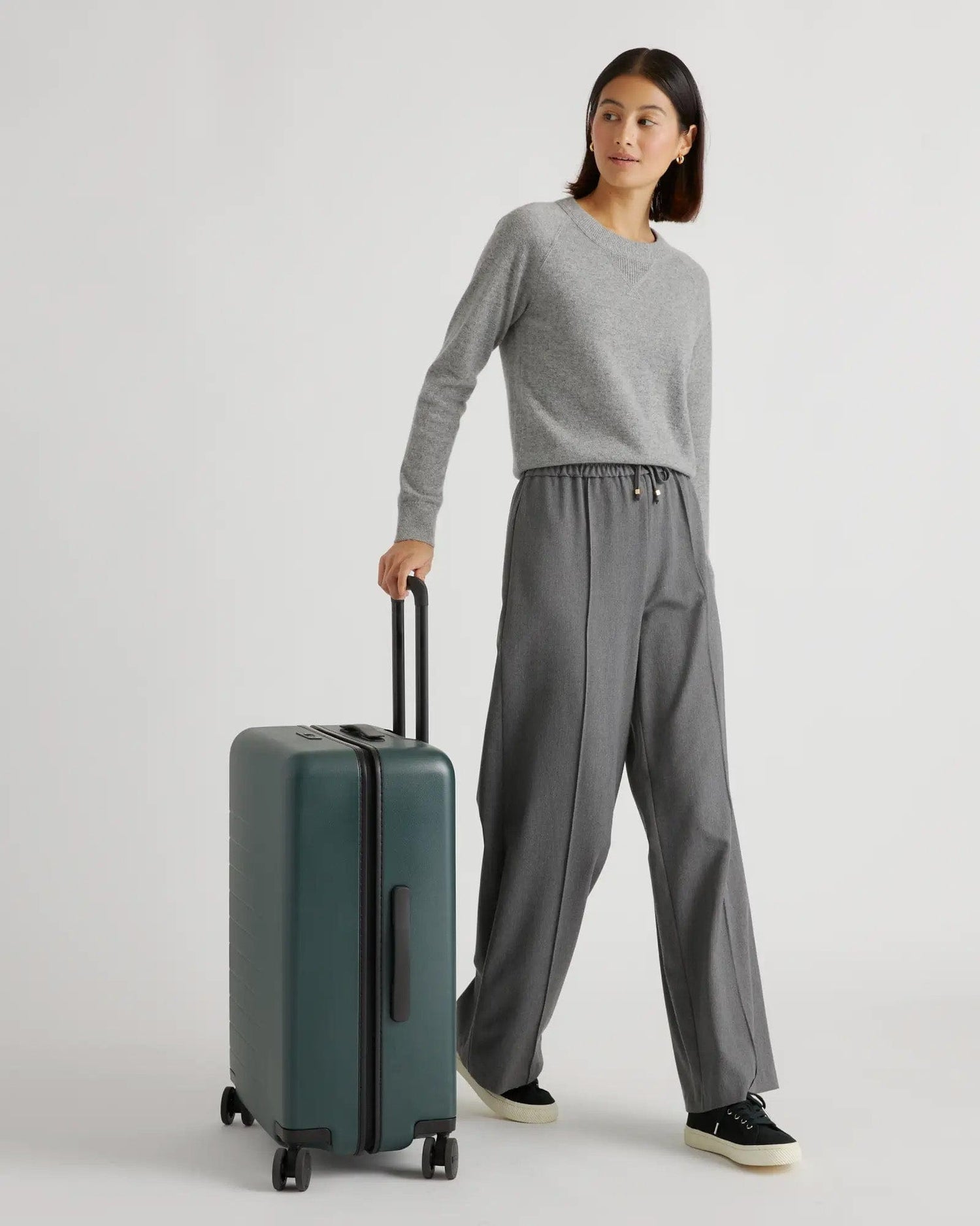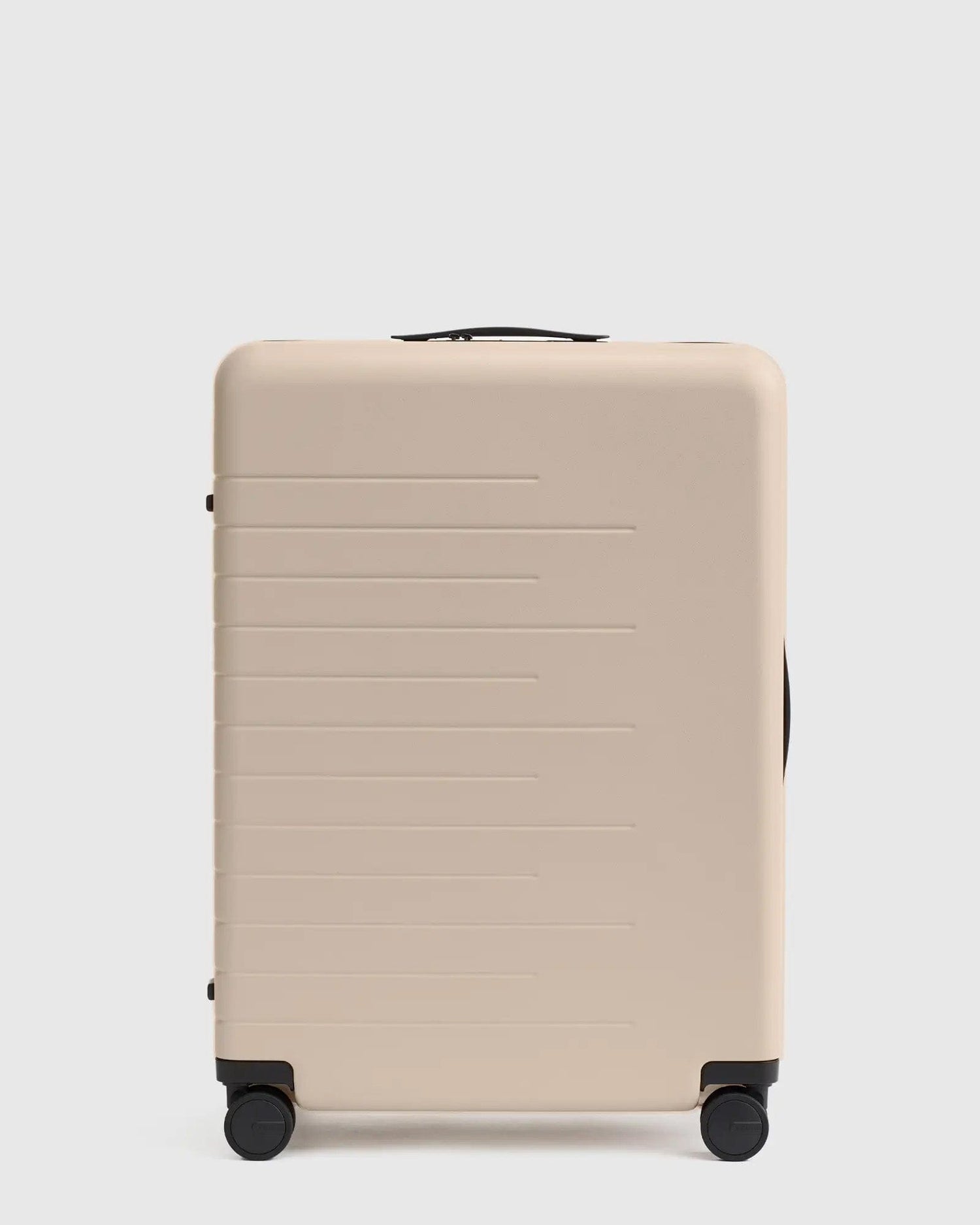 Pack it all in. Yes, all of it. The ultra-light check-in bag with a super sturdy polycarbonate shell is an organizer’s dream. This suitcase features interior compartments with a compression panel to help you pack more, plus a removable laundry bag for your dirty clothes. Breeze through the airport in style with luggage that features Japanese-crafted Hinomoto 360 degree wheels, TSA-approved lock, smooth gliding telescopic handle, and YKK zippers.