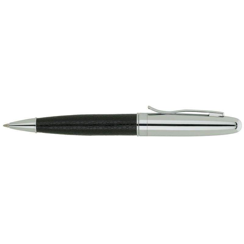 Twist-action mechanism, faux leather ballpoint pen with matching 1" x 6 3/16" tube case.
