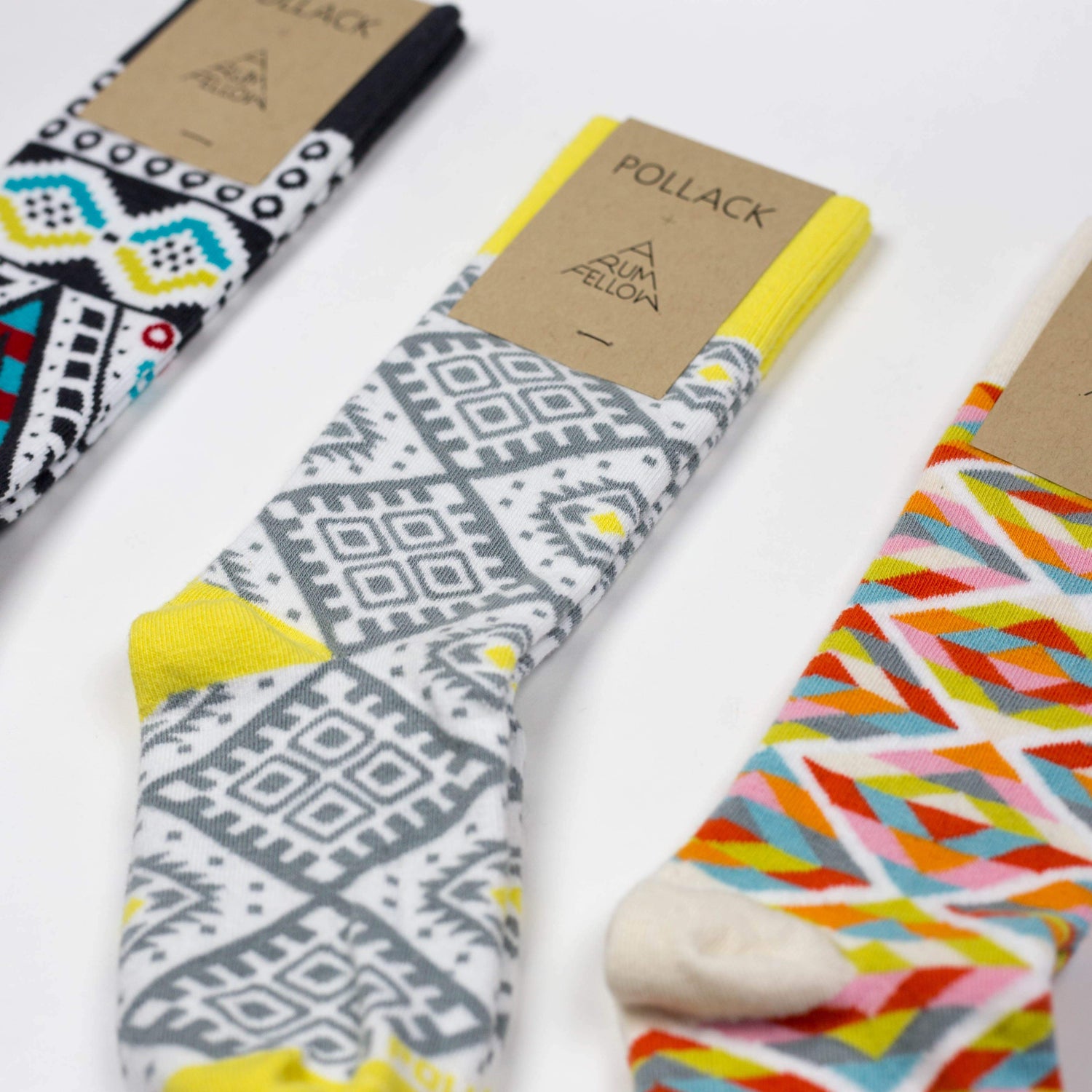 Custom crew socks with a classic look and feel, made with modern tech. Yarn-dyed, retail combed cotton crew-length socks with personalized designs.