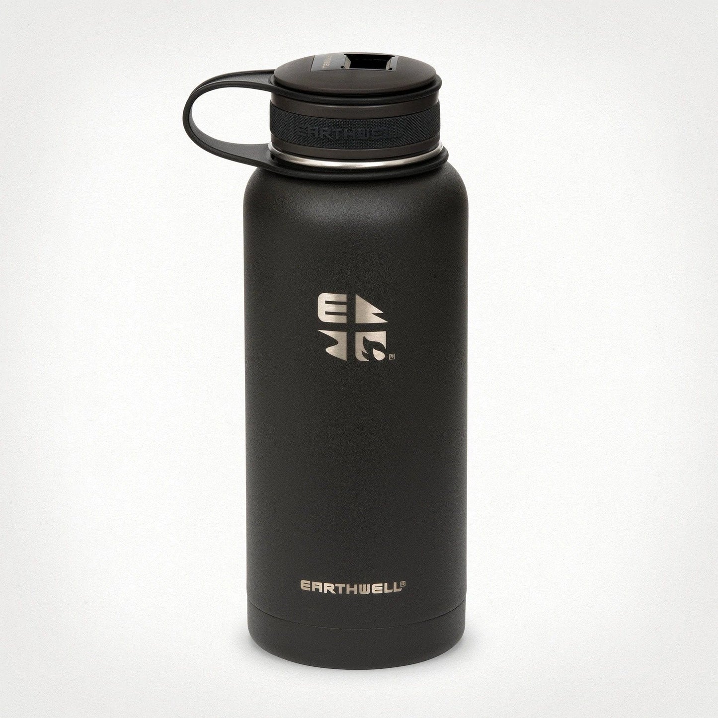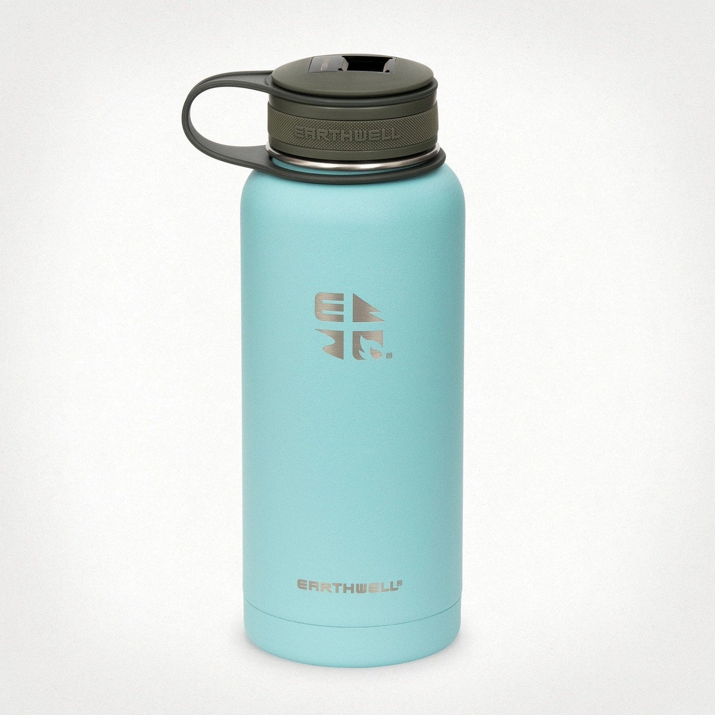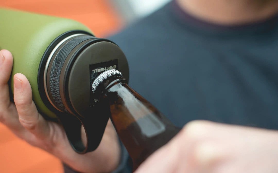 Big for adventures in the backcountry and brewpubs. Earthwell's 32oz (.95L) Kewler™ Opener Bottle keeps H2O iced up to 72 hours, beer cold up to 32 hours and hot drinks hot up to 20. Topped with our patented and insulated Bottle Opener Cap, it opens beer bottles on the fly thanks to an integrated church key. It’s also easy to transport thanks to a bottle leash with room for a two-finger carry. Prost!