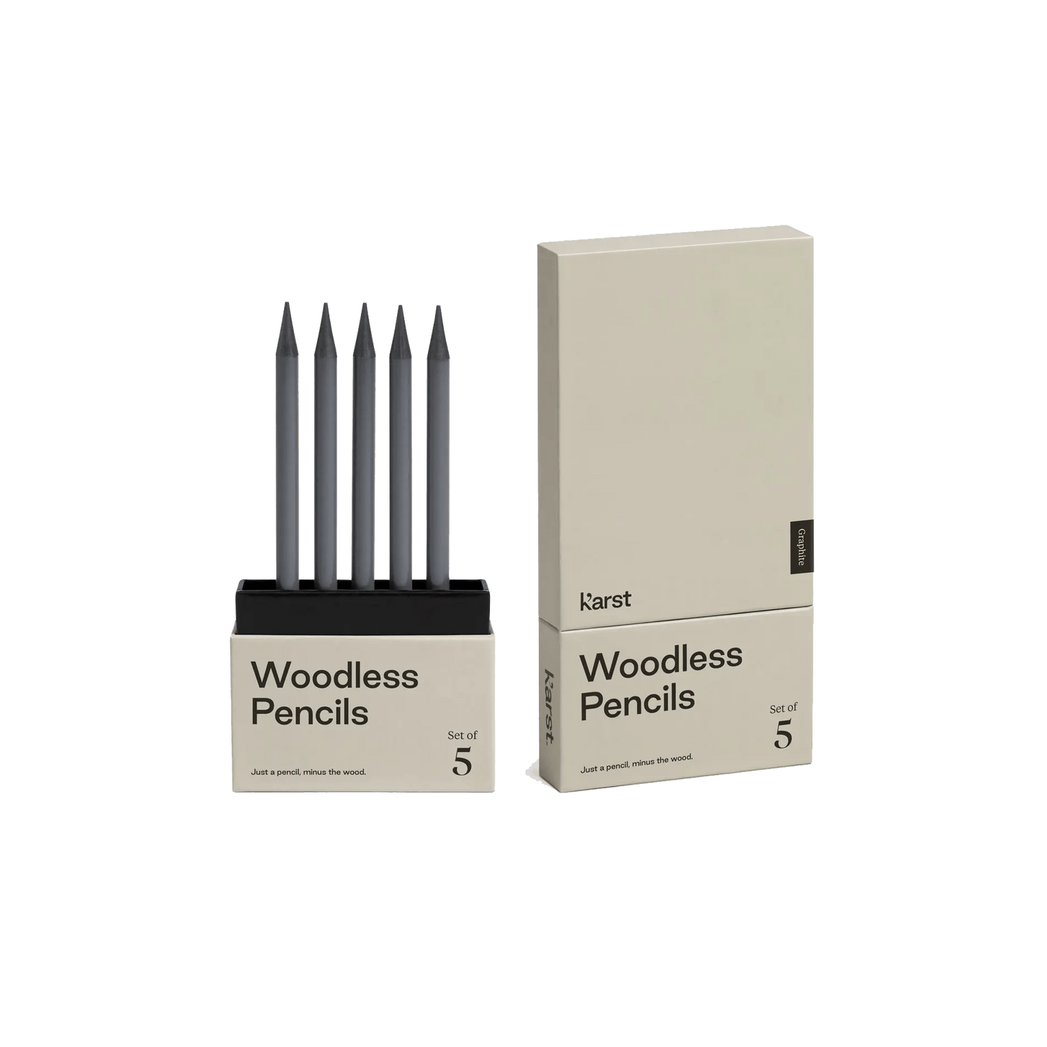 Our Woodless Pencils come as a set of 5 solid graphite pencils. Made of 100% pure graphite with 2B hardness, it’s the best lead grade for our Karst paper products. Matte coating to keep your fingers clean.