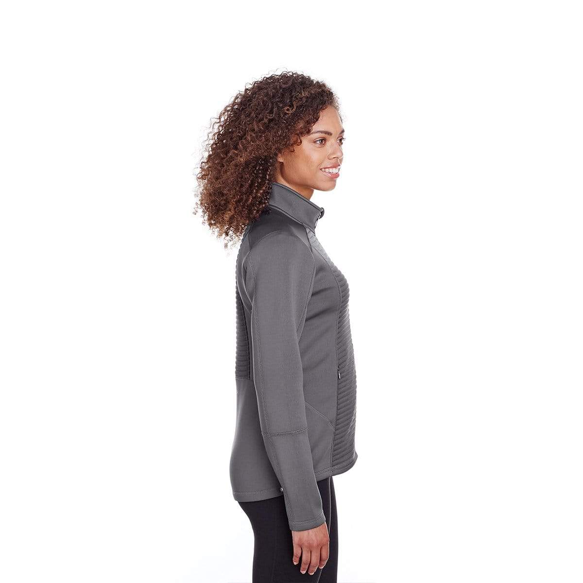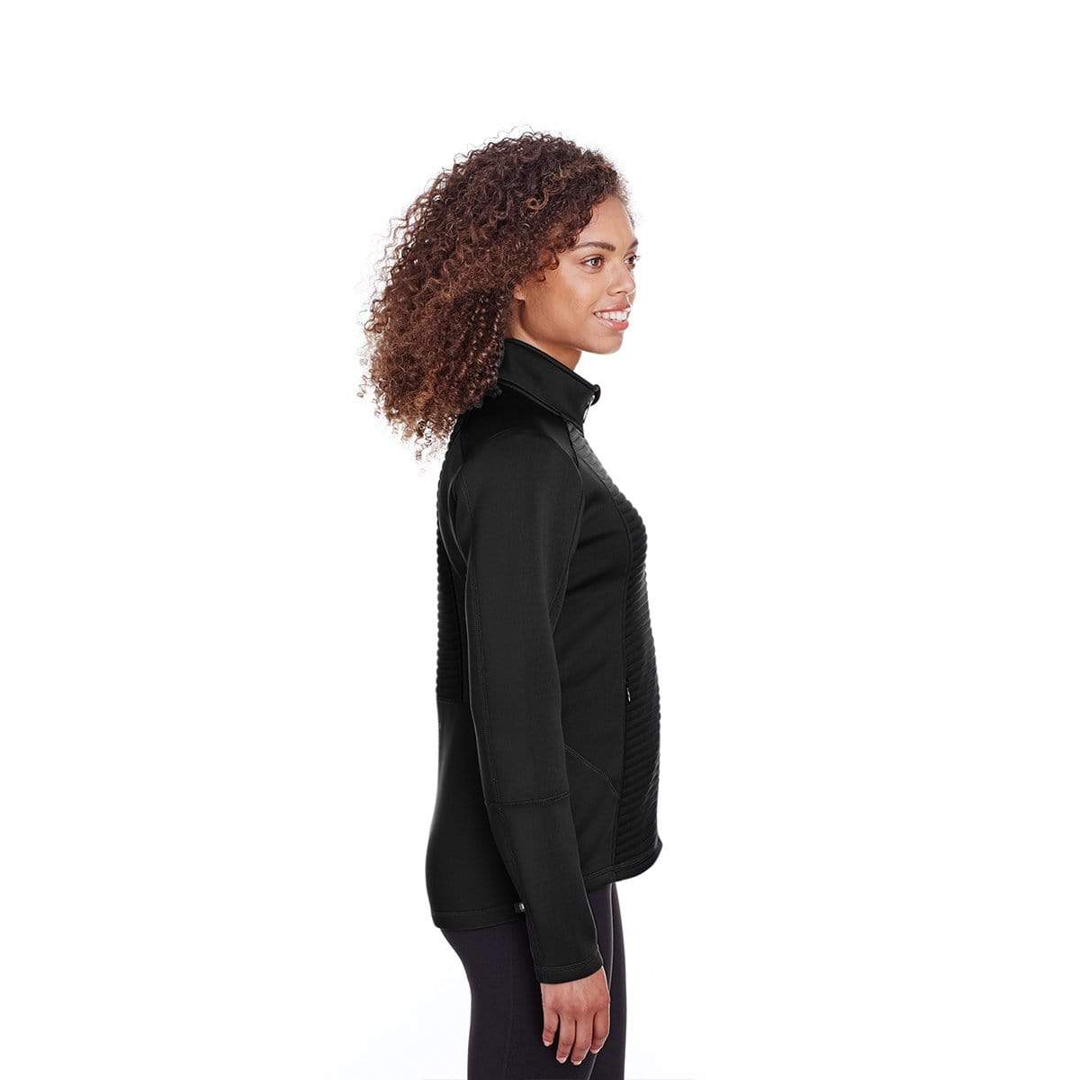 Fabric mix of neoprene and 100% polyester bonded knit with polyfill channels.
