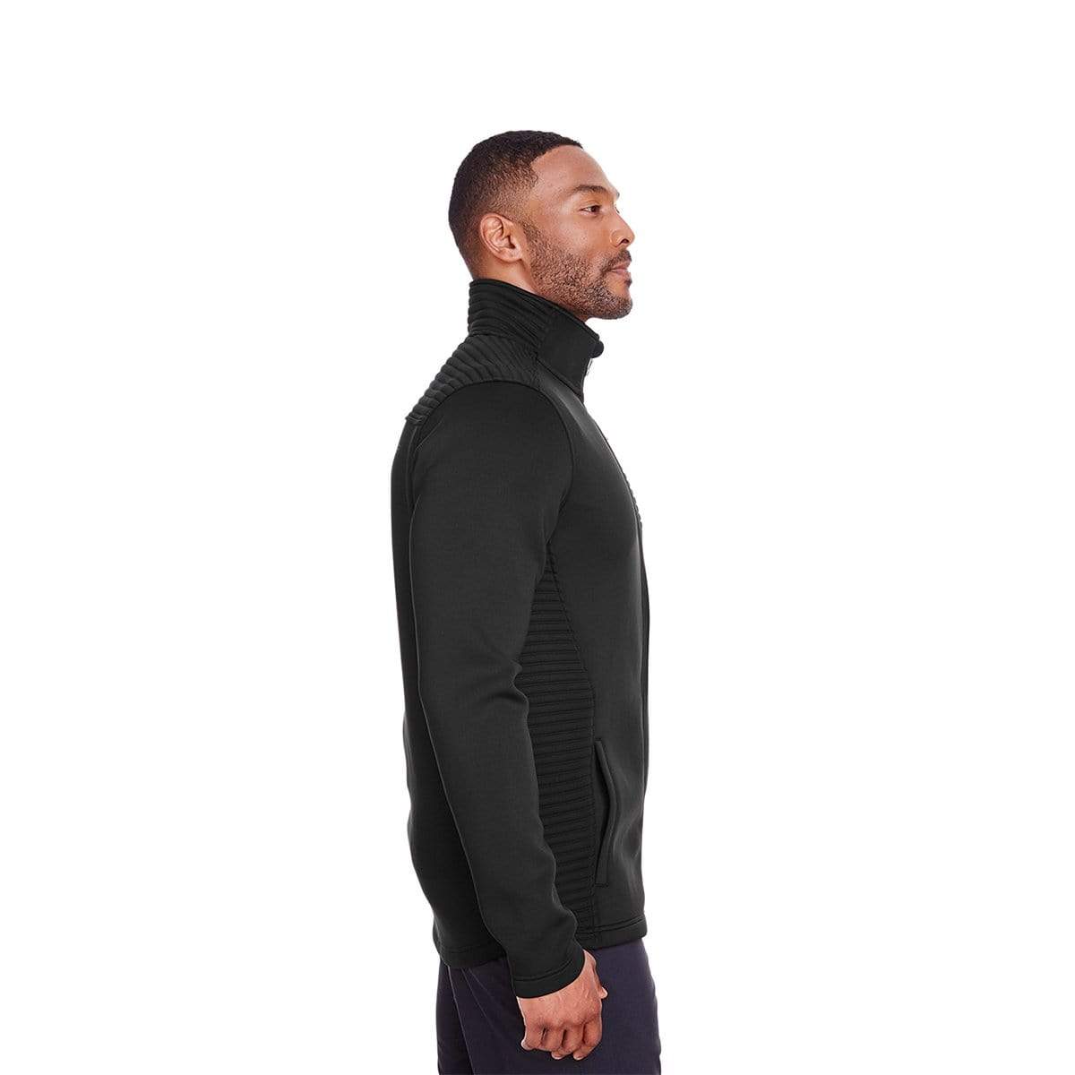 Mix of neoprene fabric and 100% polyester bonded knit with polyfill channels.