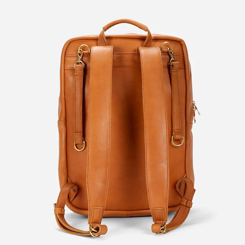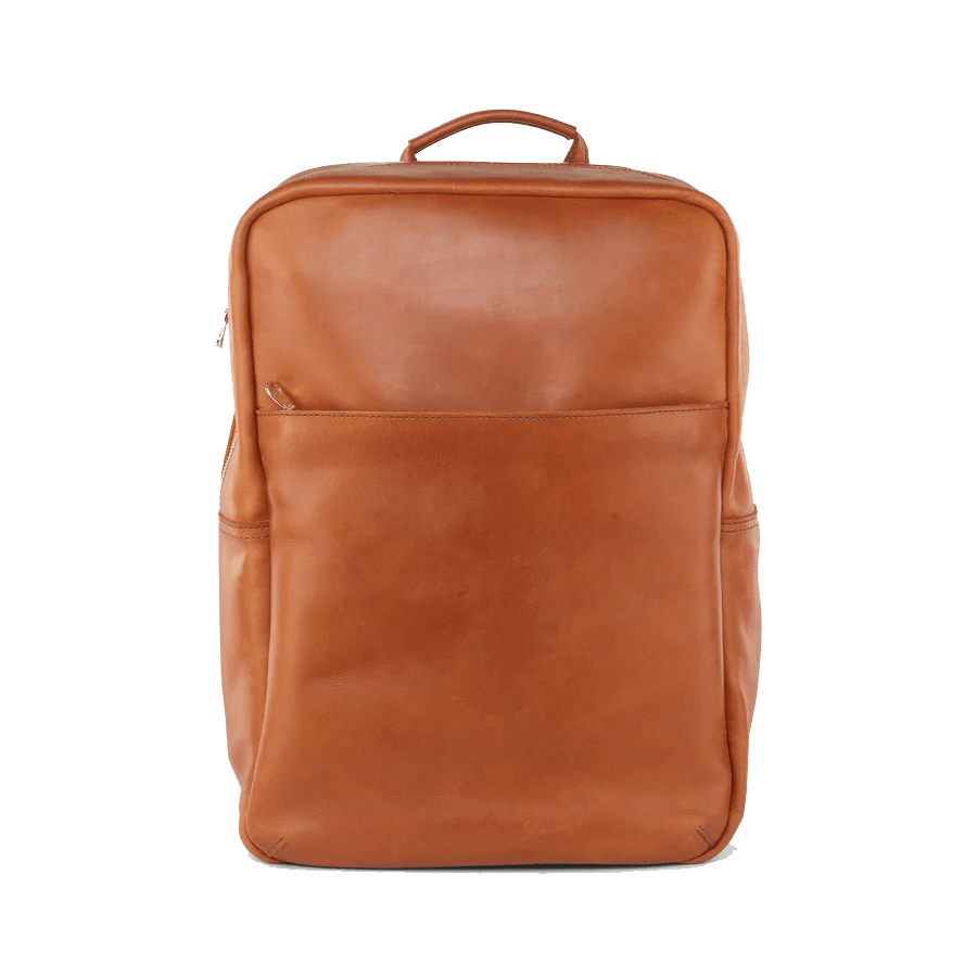 - 2 adjustable padded leather straps for backpack carry with hardware trim