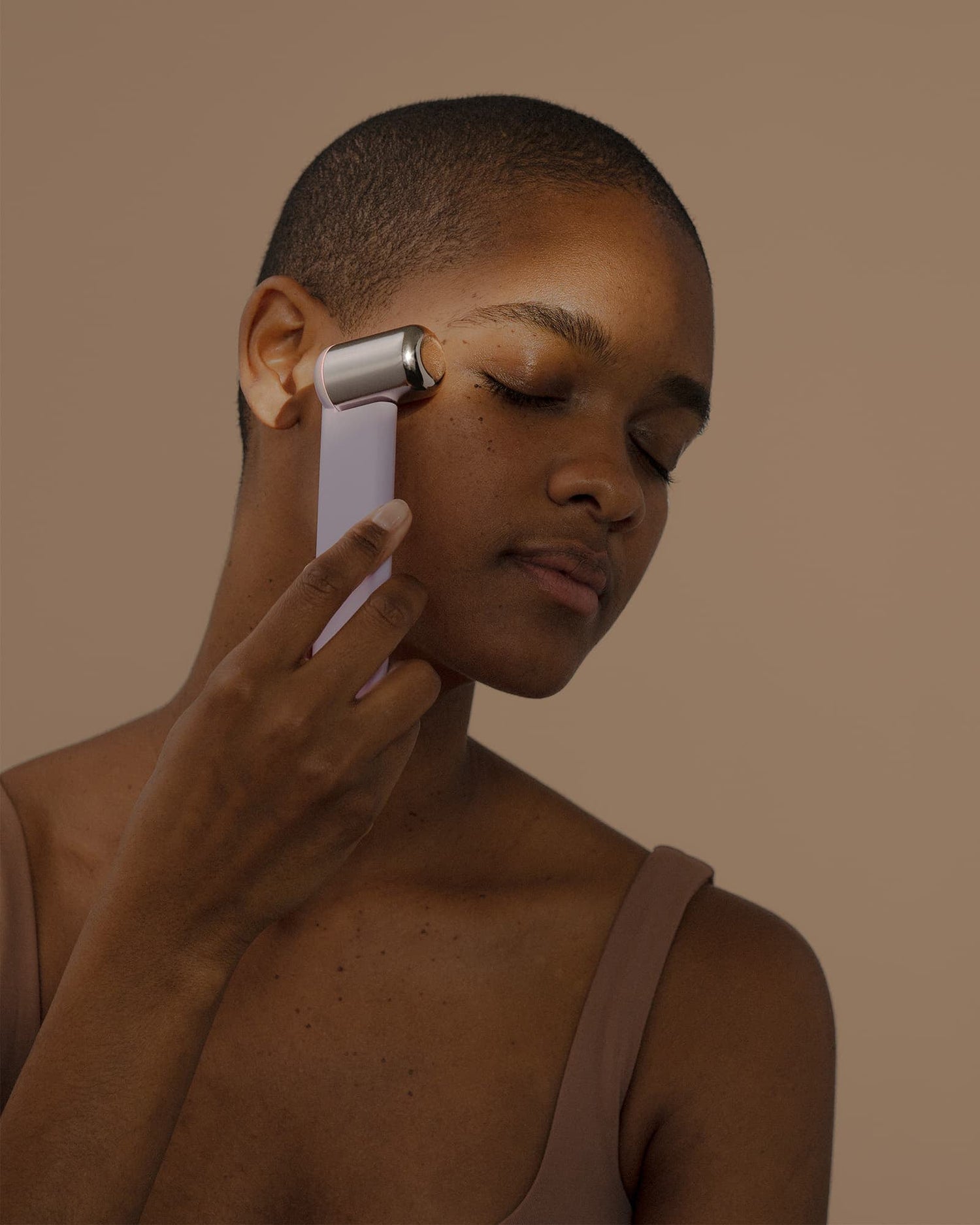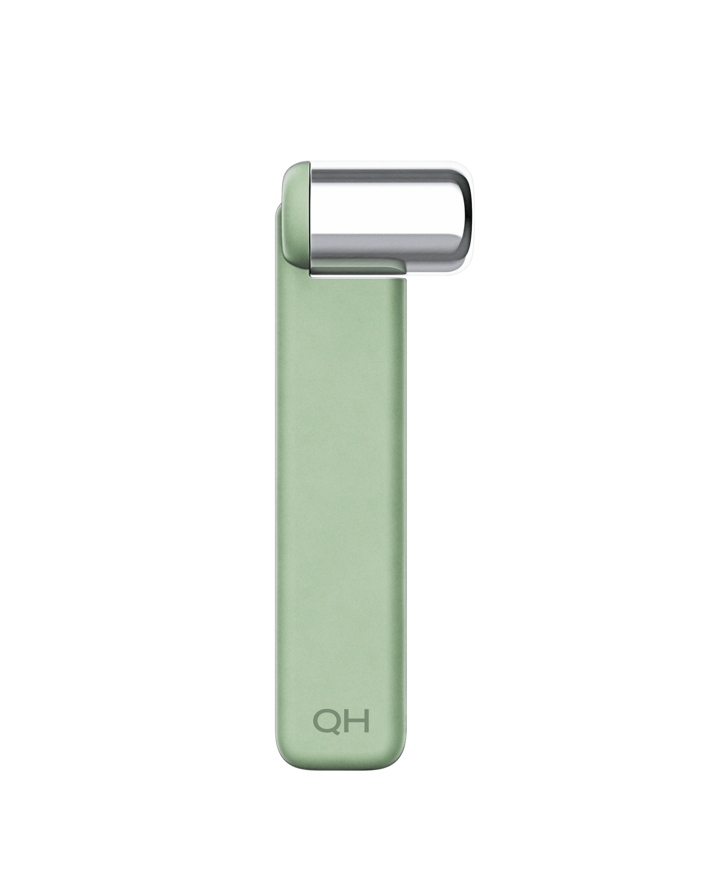 A contemporary ice roller to reduce puffiness, tightens skin, and calms redness. Soft matte plastic handle with a stainless steel roller and silicone protective cover.
