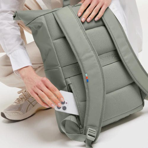 Effortlessly easy: The lightweight version of the classic, made from soft, water-repellent material with a zippered roll-top and outer bottle pockets.