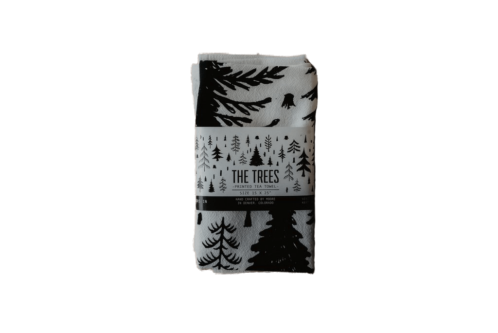 This charming tea towel has a tree print, illustrated by our friends Moore in Denver, Colorado. It makes a great addition to any kitchen, whether in a house or out in the woods.