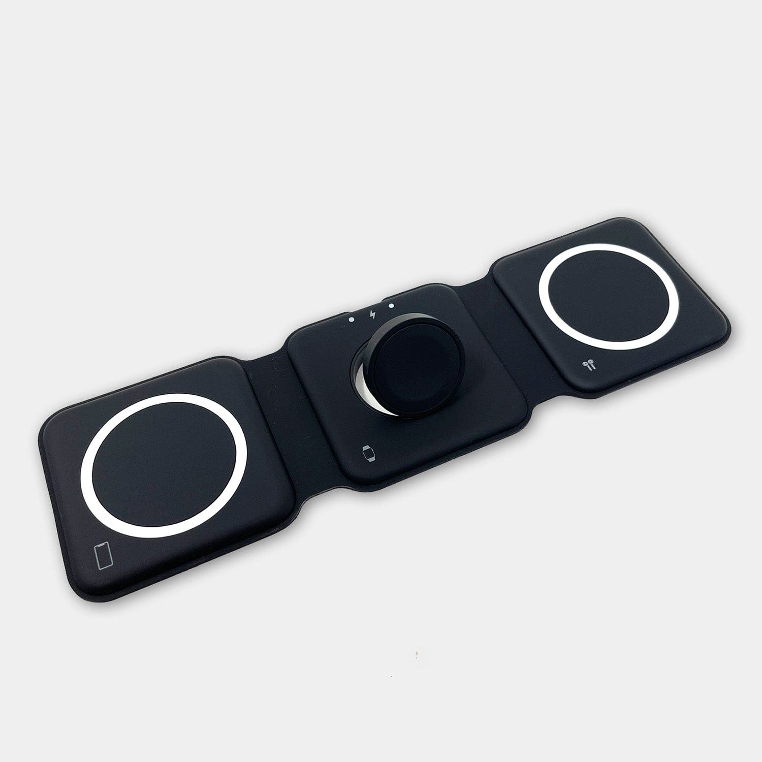 The original, patented charger that changed the way we charge on the go! The Trio Qi compact 3-in-1 travel charger offers exceptional portability and charging versatility with its tri-folding design.